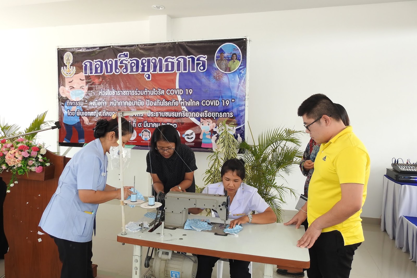 ชมรมภริยากองเรือยุทธการ ห่วงใยข้าราชการและครอบครัวกำลังพล จัดอบรมทำหน้ากากอนามัยป้องกันโรค ห่างไกล COVID 19