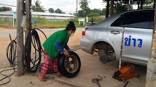 เมื่อวันที่ 28 ต.ค.64 เวลา 12.00.น.ผู้สื่อข่าวเดินทางไปยังร้านปะยางสามแยก บุ่งกระเซอร์ อ.ลานสัก จ.อุทัยธานี ได้พบกับป้ายุพิน โนนพิทักษ์ อายุ 52 ปี ซึ่งเป็นเจ้าของร้านปะยาง ได้เปิดเผยกับผู้สื่อข่าวว่า ตนเองเปิดร้านมาเกือบ 20 ปี แล้ว โดยตนเองจะเป็นคนเปลี่ยนยางที่ร้านทั้งหมด ไม่ว่าจะเป็น รถจยย.รถกระเก๋ง รถกระบะ รถใหญ่ โดยใช้สองมือเข็นยาง และเข็นล้อโดยไม่มีใครมาช่วยเหลือ หลังจากนั้นได้ลงมือถอดยางเก่าออกและใส่ยางใหม่ด้วยตัวเอง ให้เห็นว่าพละกำลังของหญิงสาวก็สามารถเปลี่ยนยางได้เหมือนกับชายอกสามศอก