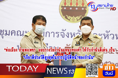 "พ่อเมือง กำแพงเพชร มอบรางวัลกำนันแหนบทองคำ ให้กับกำนันดีเด่น เป็น "เกียรติประวัติสูงสุดในการปฏิบัติหน้าของกำนัน"