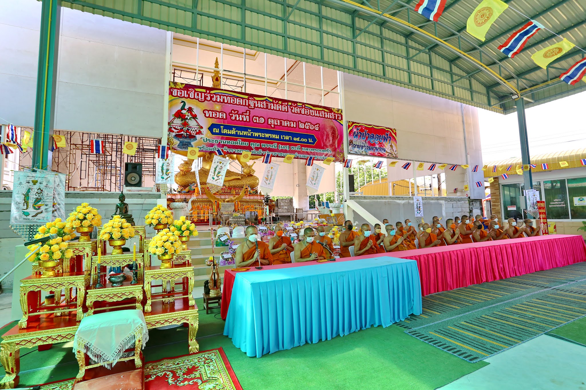 ชลบุรี - วัดช่องแสมสาร จัดงานทอดกฐินสามัคคี 2564 แบบนิวนอมอล เพื่อความปลอดภัยในชุมชนและป้องกันโควิด-19